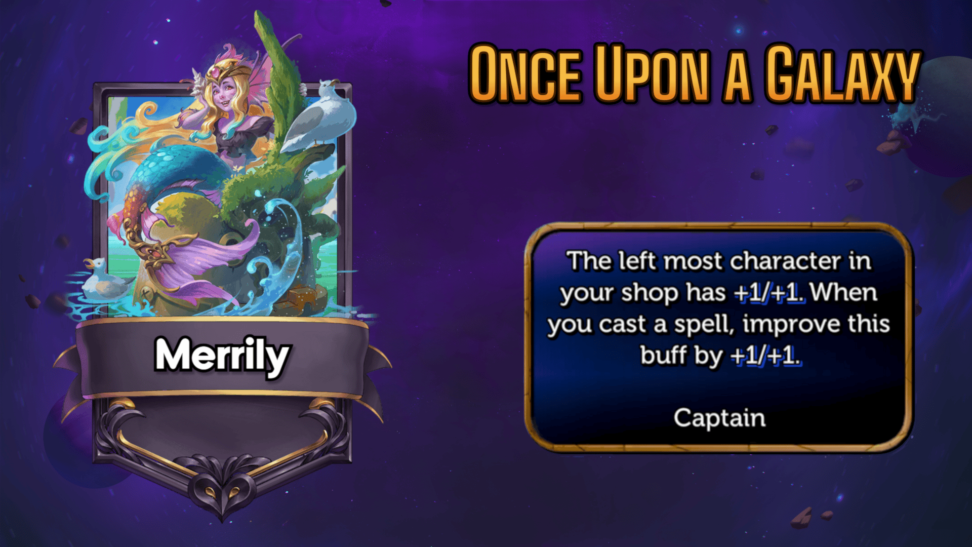 She sings, she sparkles, and she surges with power! The mermaid Merrily turns every tide in your favor — cast spells and grow powerful allies. Merrily is always ready to make waves.